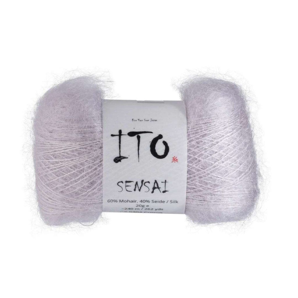 ITO Sensai je ikonická kombinace mohéru a hedvábí, která vytváří jemný, elegantní opar (halo) a dodá pletenině lehkost i vizuální hloubku. Výsledný úplet je nadýchaný, měkký na dotek a působí velmi čistě a luxusně — i u jednoduchých střihů.