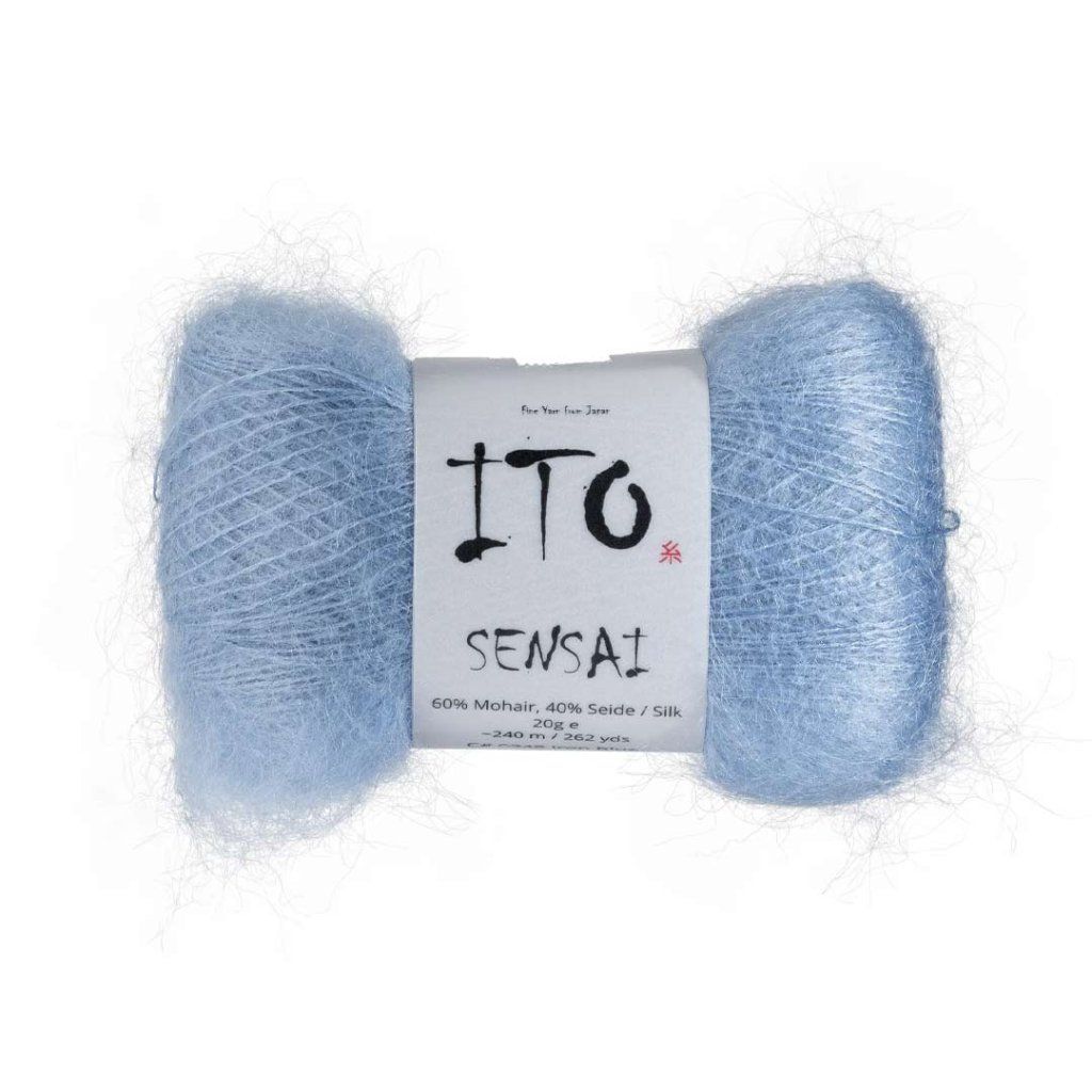 ITO Sensai je ikonická kombinace mohéru a hedvábí, která vytváří jemný, elegantní opar (halo) a dodá pletenině lehkost i vizuální hloubku. Výsledný úplet je nadýchaný, měkký na dotek a působí velmi čistě a luxusně — i u jednoduchých střihů.