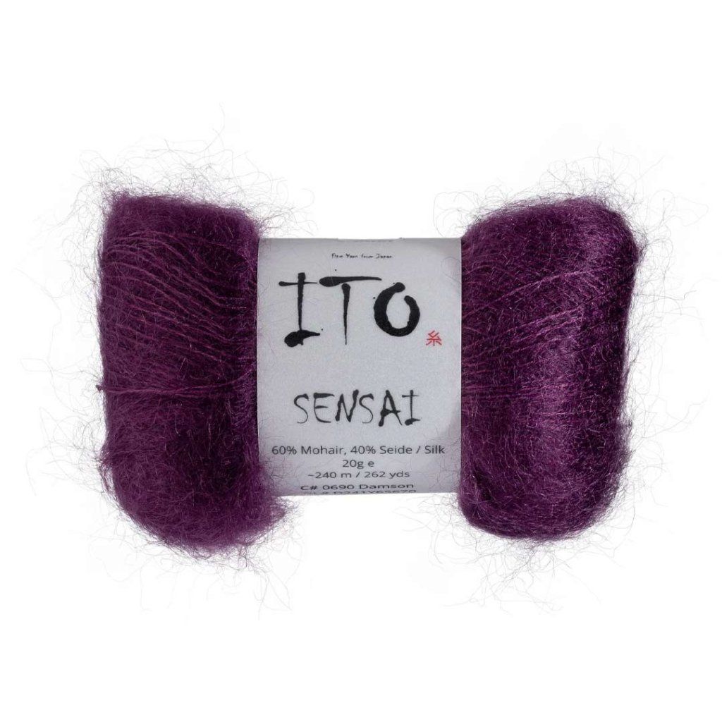 ITO Sensai je ikonická kombinace mohéru a hedvábí, která vytváří jemný, elegantní opar (halo) a dodá pletenině lehkost i vizuální hloubku. Výsledný úplet je nadýchaný, měkký na dotek a působí velmi čistě a luxusně — i u jednoduchých střihů.