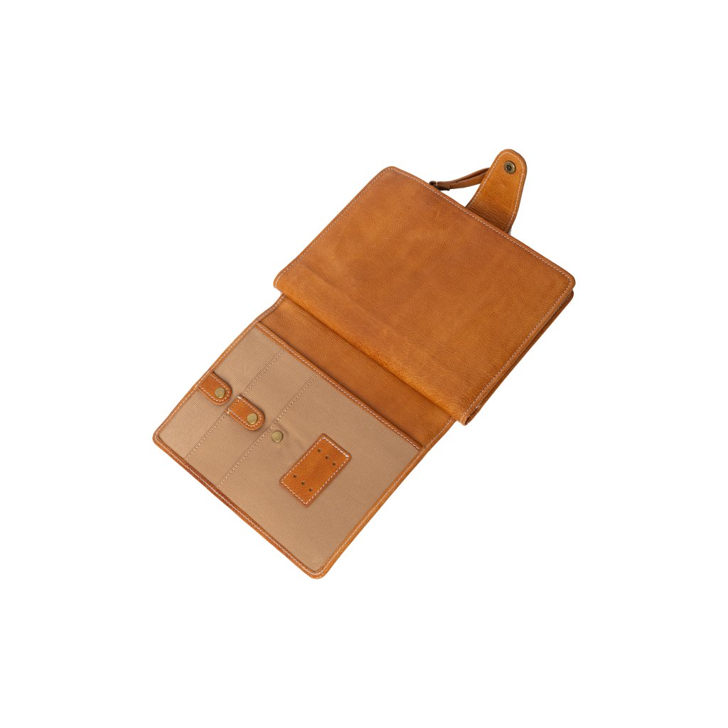 Vyrobeno z přirozeně barvené hovězí kůže. Před dokončením je povrch ošetřen barvivem, aby se zachoval přirozený zrnitý vzor a značky, díky čemuž je každá taška jedinečná. Ručně je aplikován lehký vosk, který vytváří hladký, poddajný povrch, který s používáním krásně stárne.