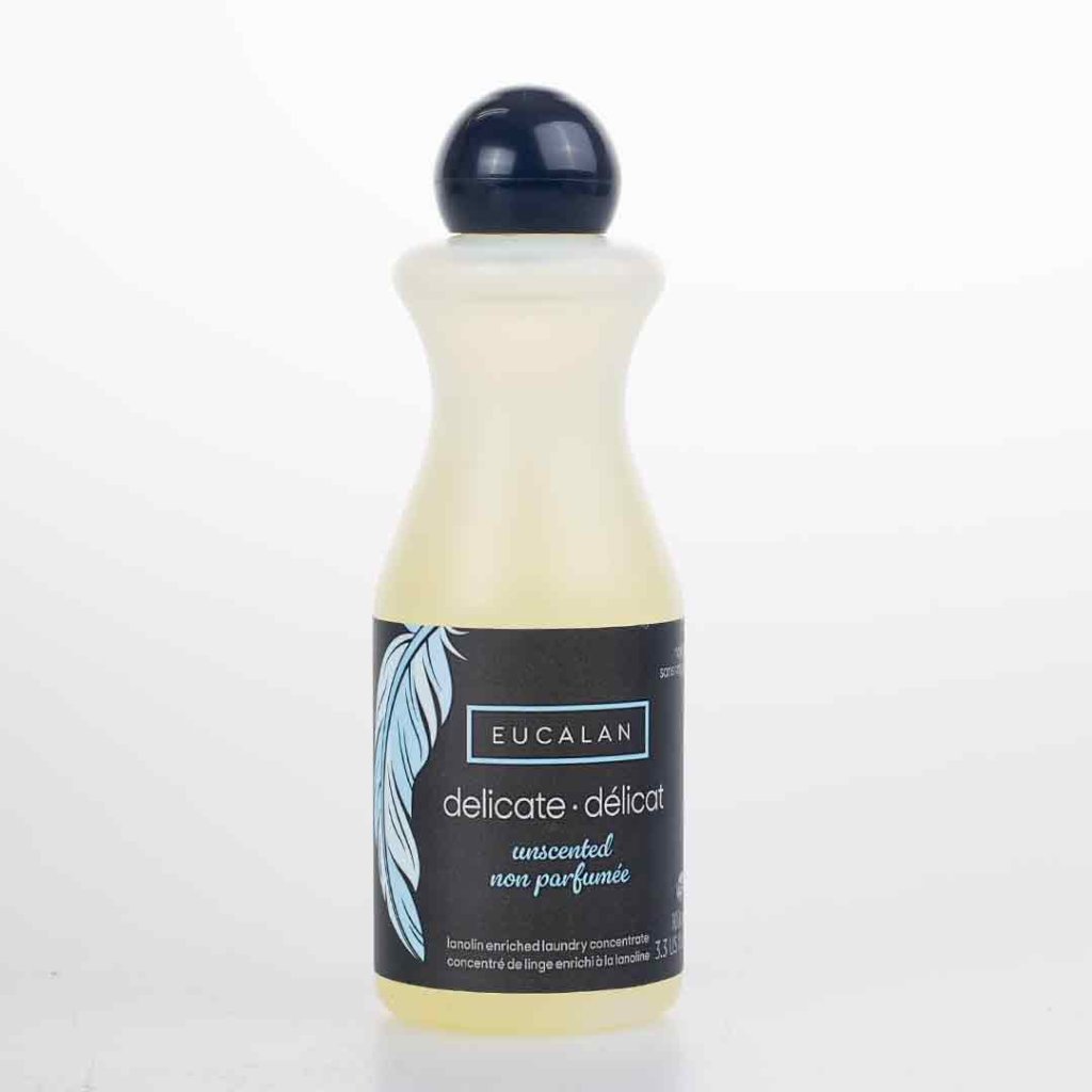 Napusťte vlažnou vodu do umyvadla a přidejte dávku Eucalanu (stačí cca 5 ml na 4 l vody). Vložte pleteninu, nechte ji nasáknout až hodinu a občas ji jemně protřepejte. Velkou výhodou je bezoplachové použití - tím zůstane v prádle tolik důležitý lanolin a prádlo je tak krásně vyživené. Sušte volně rozložené.
