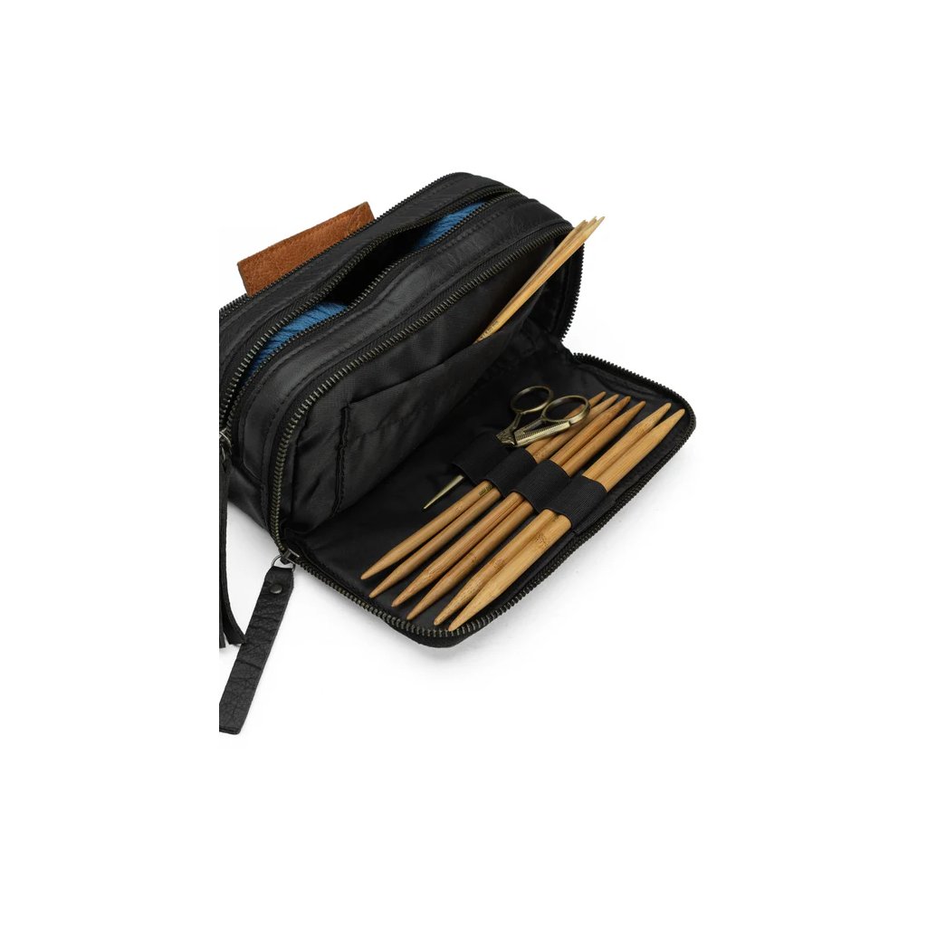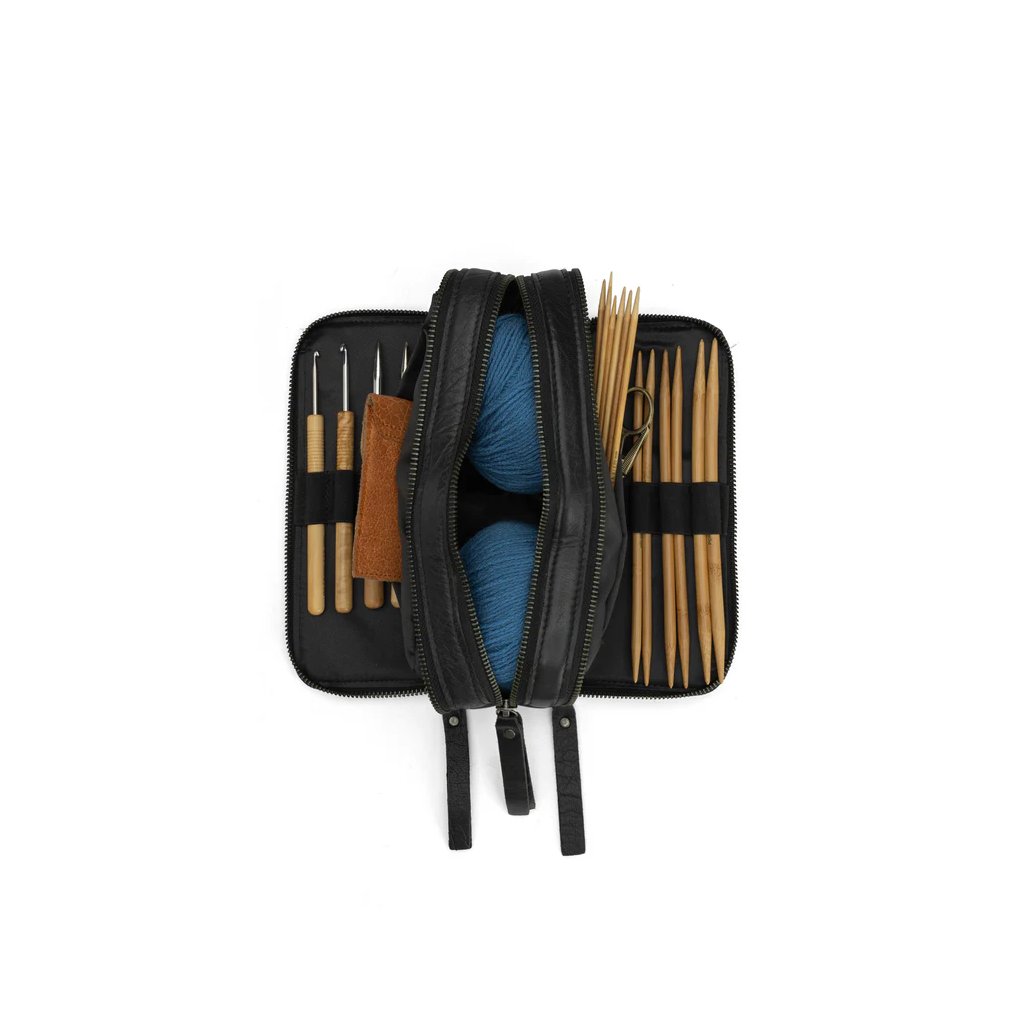 Díky třem chytrým přihrádkám se zipem budete mít veškeré pomůcky krásně uspořádané. Do elastických pásků uložíte háčky nebo jehlice, prostřední oddíl pojme klubíčka přízí a vnější kapsa je ideální na drobnosti, jako jsou značkovače, nůžky či metr.