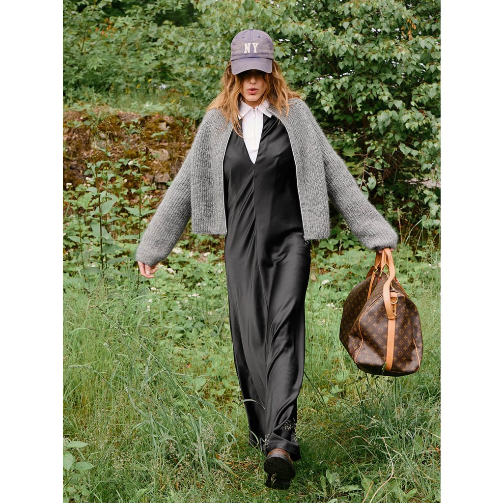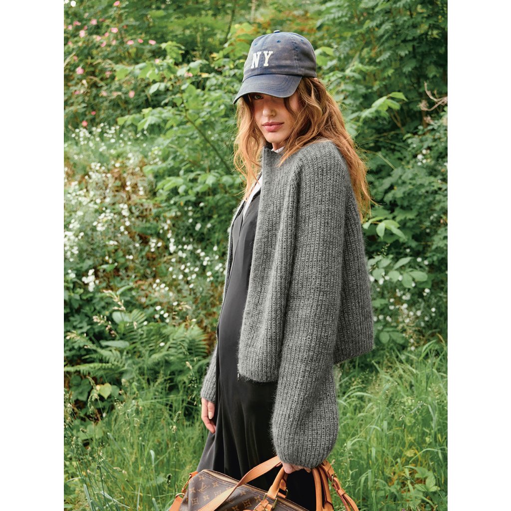 Tia Zipper Jacket od značky Sandnes Garn je moderní pletený kabátek se zipem, která spojuje nadčasový design a komfort. Pletena je dvojitou přízí – Sunday a Tynn Silk Mohair, což vytváří měkký, lehký a hřejivý materiál s jemným chloupkem.