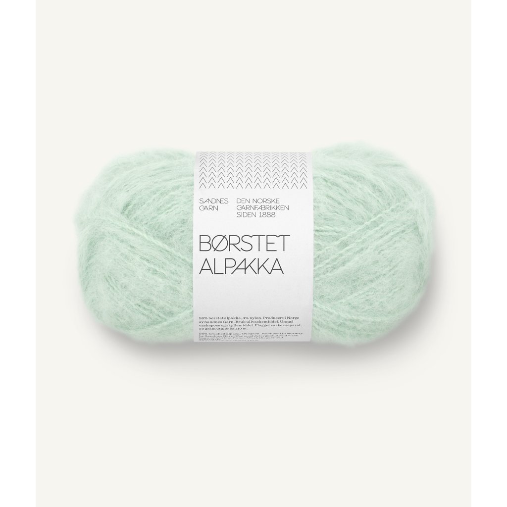 Velmi oblíbená Børstet (brushed - kartáčovaná) Alpakka značky Sandnes Garn. Je velmi lehká a vzdušná. Vlna se skládá z vláken alpaky a nilonové nitky, na kterou jsou alpaková vlákna stočená. Projekty z této vlny budou nadýchané, měkoučké a příjemné na nošení!